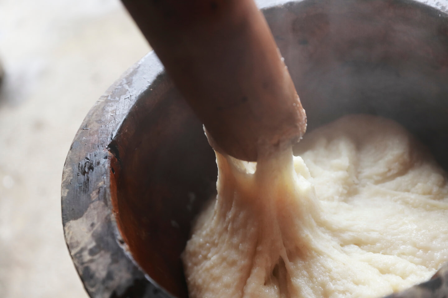 - お正月ならではの人気イベント、“お餅つき体験”を開催。臼と杵を使ってお餅をつく体験は、お子さまにも大人気。