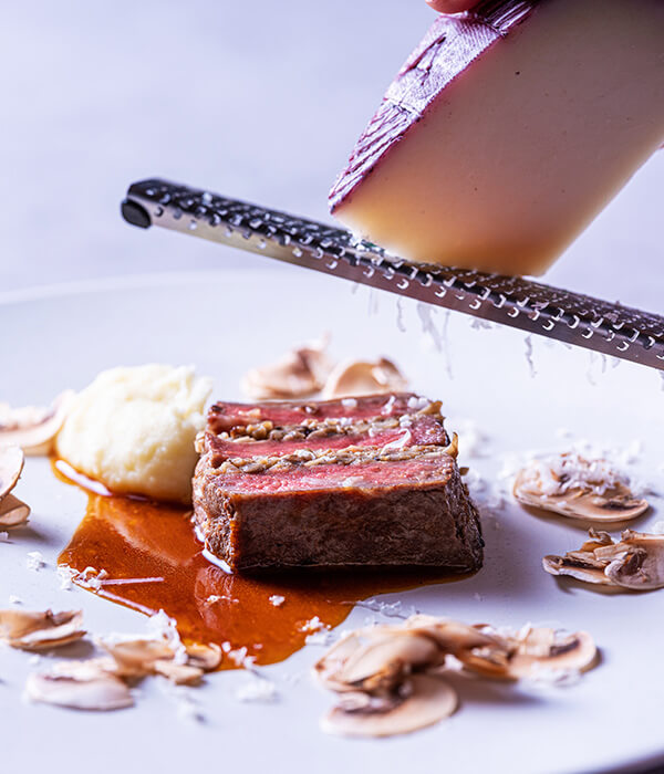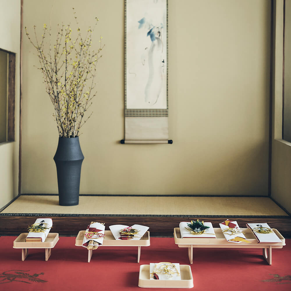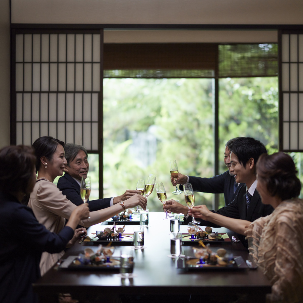 岐阜が誇る山河の素材をふんだんに使った料理で、ゲストをおもてなし。伝統的な和食に現代のエッセンスを加えた料理が、ハレの日を彩ります。