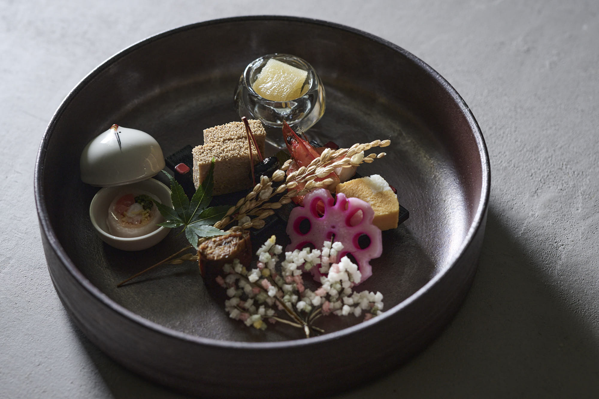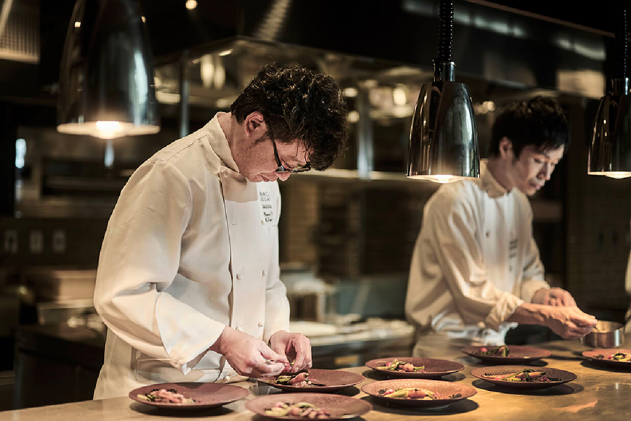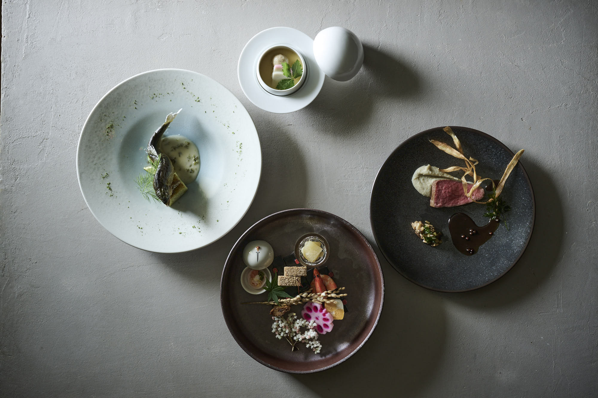 前菜からデザートまで、すべての料理に「出汁(旨み)」を取り入れています。この地ならではの食材が持つ旨みを掛け合わせることで、慣れ親しんでいるのに、どこか新しい味わいに。おもてなしを超えた感動的な食体験を、フルコースでご堪能いただけます。