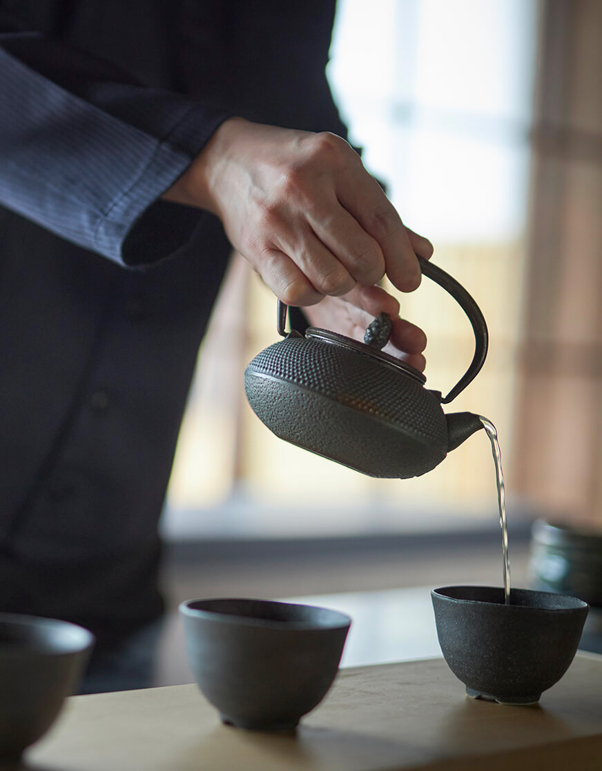 ゲストへふるまうお茶は、茶師が目の前でお点前。お茶を点てる所作や間を通して、和の文化を識る喜びを感じていただけます。茶葉は、岐阜を代表する「美濃いび茶」から旬のものを厳選。披露宴会場での着席時にいただく「食前の茶」、料理と一緒に召し上がる「食中の茶」など、シーンに合わせたお茶をお届けします。